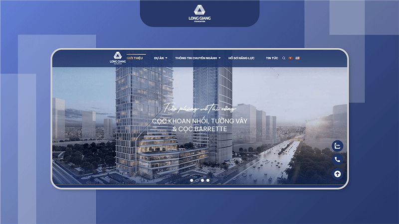 Long Giang tự hào là đơn vị đầu tiên áp dụng công nghệ khoan cọc nhồi, cọc Barrette và tường vây trong việc xử lý nền móng cho các dự án cao tầng tại Việt Nam. Cùng với năng lực và sự chuyên nghiệp của mình, Long Giang đã tạo được sự tin tưởng, trở thành đối tác đáng tin cậy của rất nhiều khách hàng. Để khẳng định quy mô cũng như vị thế trong ngành, Long Giang đã hợp tác cùng Webdepre tạo nên một website CHUYÊN NGHIỆP – ẤN TƯỢNG – TỐI ƯU